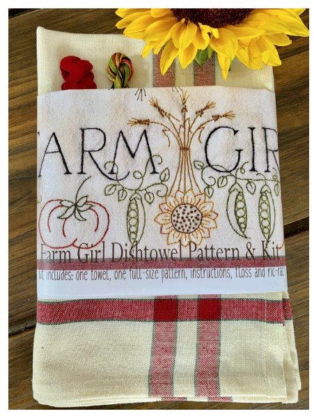 Embroidery Dishtowel Kit includes Dunroven 100% Cotton Dishtowel, DMC Floss, Red RicRac and Full size pattern to trace. Pattern also includes color scan to follow stitch color placement.
